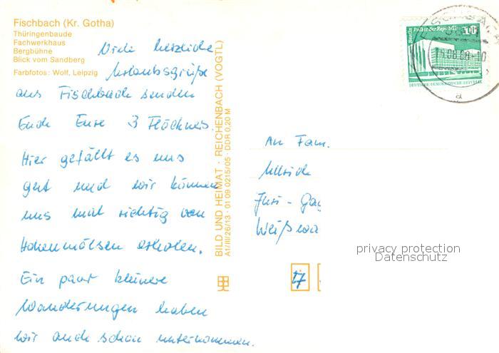 73653720 alte Postkarte Fischbach Emsetal Thueringerbaude Fachwerkhaus Bergbuehne Panorama Blick zum Sandberg postalisch gelaufen Erhaltung siehe scans [FriedD77] KatCode: 11110016067084