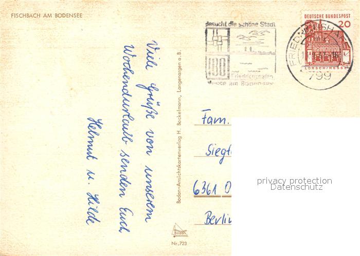 73155901 alte Postkarte Fischbach Friedrichshafen Strand Bootsvermietung Kurkonzert Gondelhafen Strandbad Hauptstrasse postalisch gelaufen Erhaltung siehe scans [FriedD77] KatCode: 11110008435016