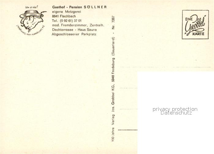 73739760 Fischbach Kronach Gasthof Soellner Metzgerei Gaststube postalisch nicht gelaufen Erhaltung siehe scans [WerneD78] KatCode: 11110009476145