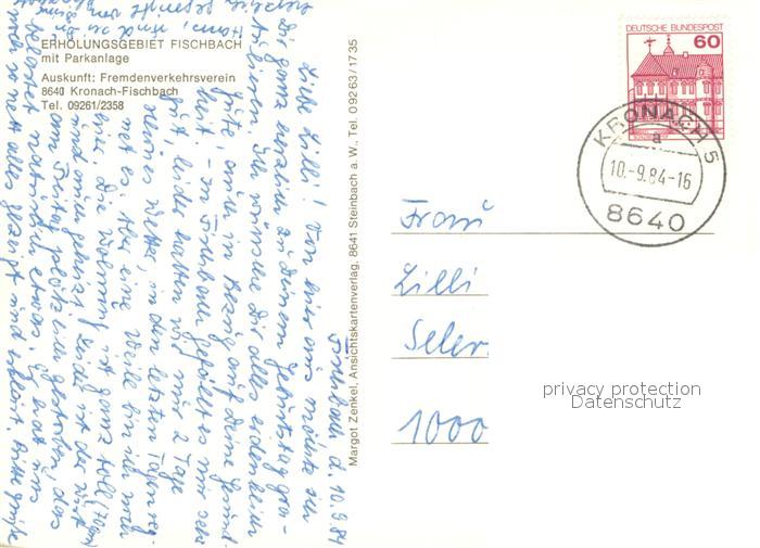 73736719 alte Postkarte Fischbach Kronach Panorama Partie am Wasser Kinderspielplatz Parkanlagen Landschaft postalisch gelaufen Erhaltung siehe scans [FriedD77] KatCode: 11110009476145