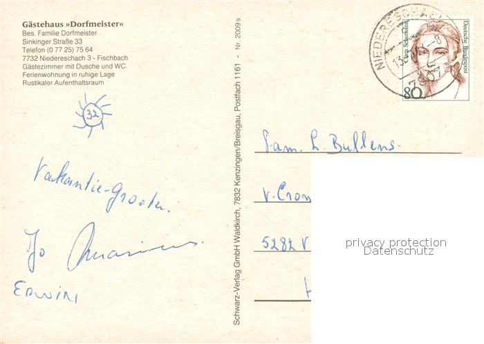 73645601 alte Postkarte Fischbach Niedereschach Gaestehaus Dorfmeister Gaststube postalisch gelaufen Erhaltung siehe scans [WerneD78] KatCode: 11110008326041