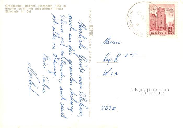 73291227 alte Postkarte Fischbach Steiermark Gasthof Dobner postalisch gelaufen Erhaltung siehe scans [LiesaD40] KatCode: 11390224061708