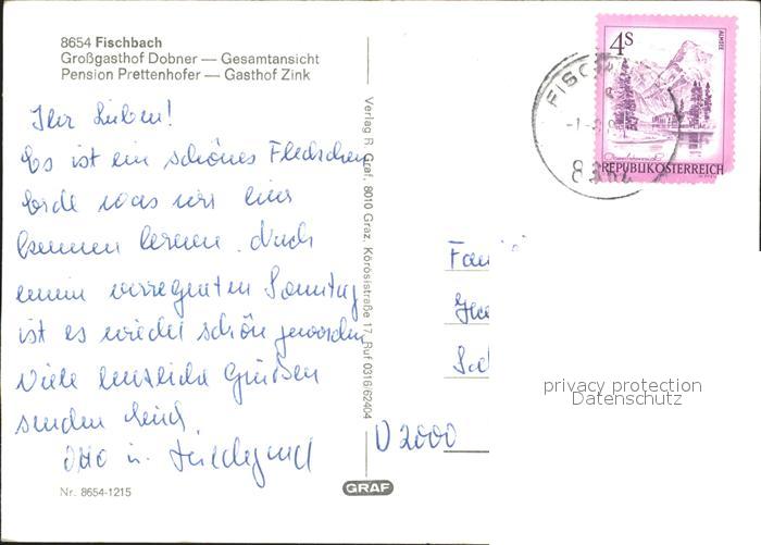 71961785 alte Postkarte Fischbach Steiermark Grossgasthof Dobner Gesamtansicht Pension Prettenhofer Gasthof Zink postalisch gelaufen Erhaltung siehe scans KatCode: 11390224061708