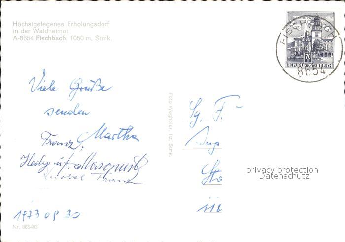 72238880 alte Postkarte Fischbach Steiermark mit Kirche Kapelle postalisch gelaufen Erhaltung siehe scans KatCode: 11390224061708