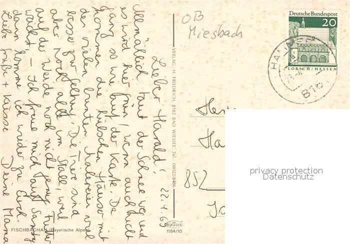72917152 alte Postkarte Fischbachau postalisch gelaufen Erhaltung siehe scans [NatalD47] KatCode: 11110009182114