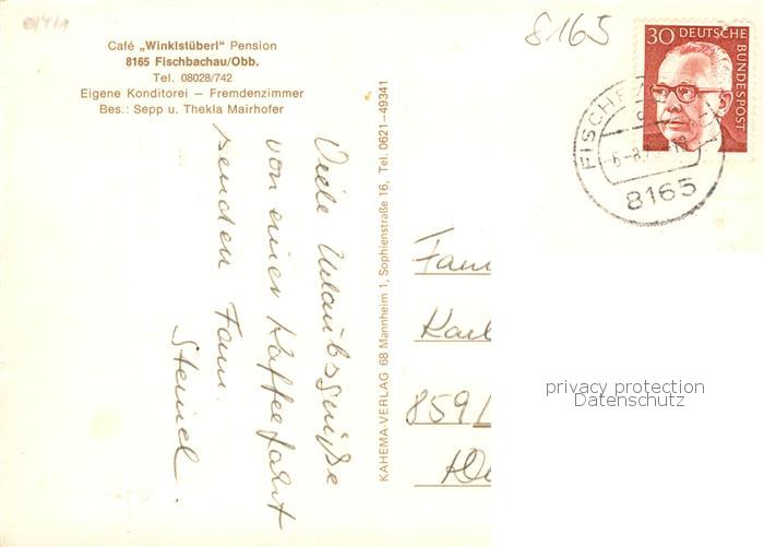 73868373 alte Postkarte Fischbachau Bayern Cafe Winklstueberl Gastraeume Terrasse postalisch gelaufen Erhaltung siehe scans [WerneD78] KatCode: 11110009182114