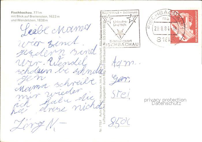 72174393 alte Postkarte Fischbachau Breitenstein Wendelstein postalisch gelaufen Erhaltung siehe scans KatCode: 11110009182114