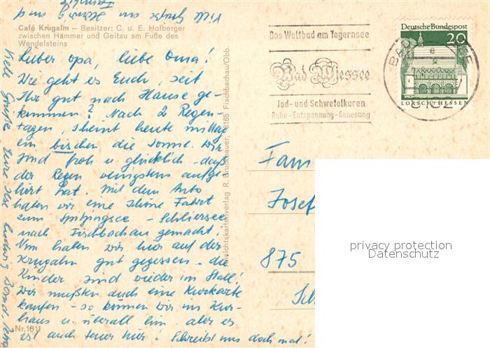 72971375 alte Postkarte Fischbachau Cafe Krugalm am Fusse des Wendelsteins Alpenpanorama postalisch gelaufen Erhaltung siehe scans [FriedD77] KatCode: 11110009182114