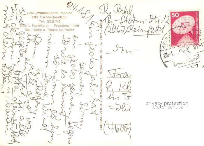 73660590 alte Postkarte Fischbachau Cafe Pension Winklstueberl Terrasse postalisch gelaufen Erhaltung siehe scans [FriedD77] KatCode: 11110009182114