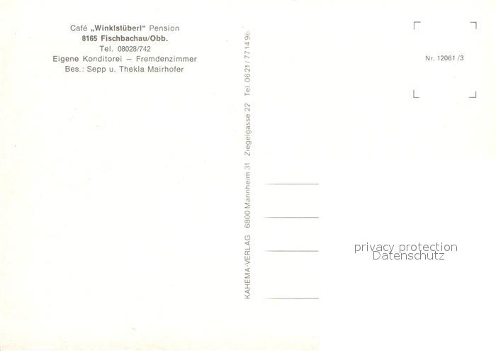 72972598 Fischbachau Cafe Winklstueberl Pension Terrasse postalisch nicht gelaufen Erhaltung siehe scans [FriedD77] KatCode: 11110009182114