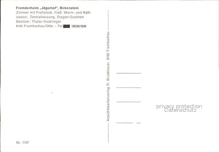 72134013 Fischbachau Fremdenheim Jaegerhof Birkenstein postalisch nicht gelaufen KatCode: 11110009182114