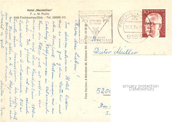 73103992 alte Postkarte Fischbachau Hotel Maximilian postalisch gelaufen Erhaltung siehe scans [KathaD81] KatCode: 11110009182114