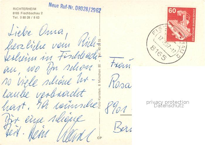 73719857 alte Postkarte Fischbachau Richterheim postalisch gelaufen Erhaltung siehe scans [WerneD78] KatCode: 11110009182114