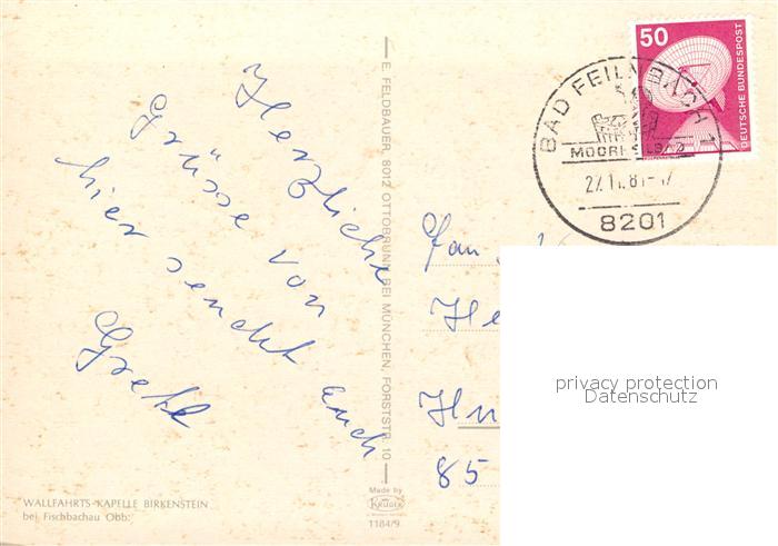 72931447 alte Postkarte Fischbachau Wallfahrtskirche Birkenstein postalisch gelaufen Erhaltung siehe scans [KathaD81] KatCode: 11110009182114