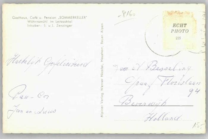 40209612 Fischbachau Wörnsmühle Leitzachtal Gasthaus Sommerkeller x 1955 KatCode 11110009182114