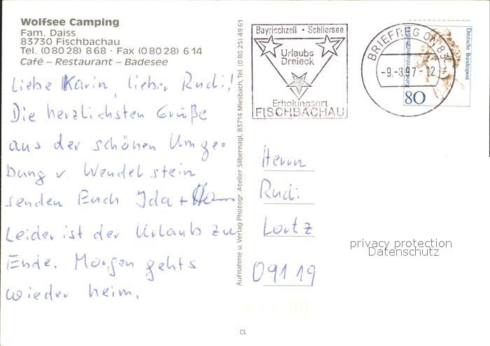 72069238 alte Postkarte Fischbachau Wolfsee Camping Cafe Restaurant Badesee postalisch gelaufen Erhaltung siehe scans KatCode: 11110009182114