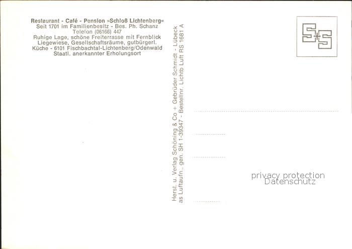 72390845 Fischbachtal Odenwald Restaurant Cafe Pension Schloss Lichtenberg postalisch nicht gelaufen Erhaltung siehe scans KatCode: 11110006432007