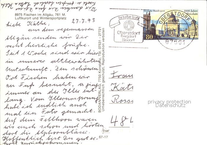 72479442 alte Postkarte Fischen Allgaeu postalisch gelaufen Erhaltung siehe scans KatCode: 11110009780121