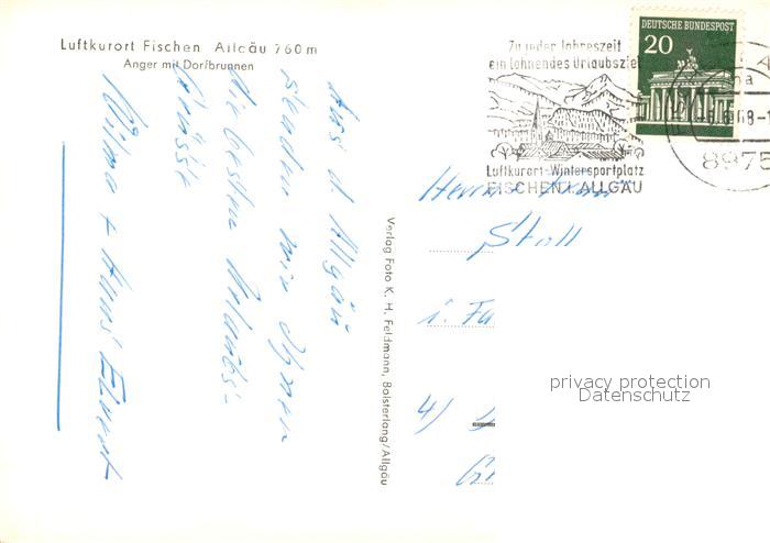 73293882 alte Postkarte Fischen Allgaeu Anger mit Dorfbrunnen postalisch gelaufen Erhaltung siehe scans [LiesaD40] KatCode: 11110009780121