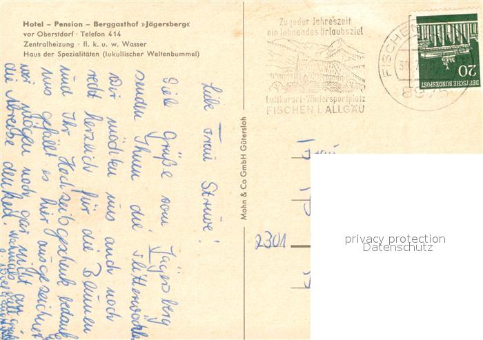 72954671 alte Postkarte Fischen Allgaeu Berggasthof Jaegersberg postalisch gelaufen Erhaltung siehe scans [PaolaD17] KatCode: 11110009780121