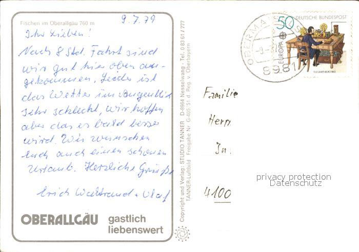71847538 alte Postkarte Fischen Allgaeu Fliegeraufnahme postalisch gelaufen Erhaltung siehe scans KatCode: 11110009780121