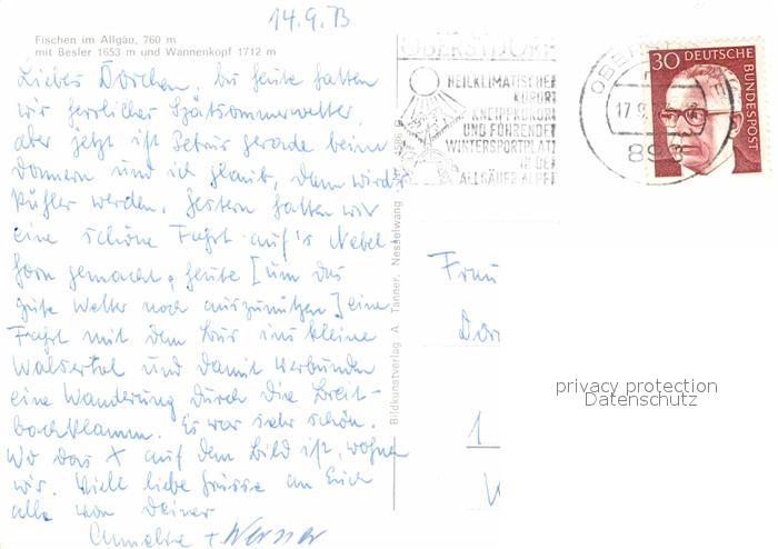 72854536 alte Postkarte Fischen Allgaeu Fliegeraufnahme mit Besler und Wannenkopf postalisch gelaufen Erhaltung siehe scans [LiesaD40] KatCode: 11110009780121