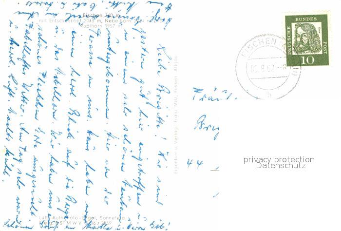 72796425 alte Postkarte Fischen Allgaeu Fliegeraufnahme mit Entenkopf und Nebelhorn postalisch gelaufen Erhaltung siehe scans [LiesaD40] KatCode: 11110009780121