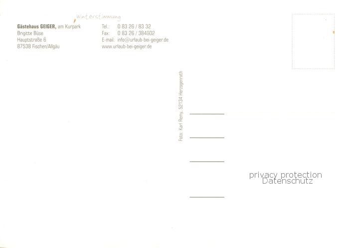 73785326 Fischen Allgaeu Gaestehaus Geiger am Kurpark Winterpanorama Allgaeuer Alpen postalisch nicht gelaufen Erhaltung siehe scans [FriedD77] KatCode: 11110009780121