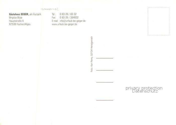 73785704 Fischen Allgaeu Gaestehaus Gieger Gaststube Terrasse postalisch nicht gelaufen Erhaltung siehe scans [WerneD78] KatCode: 11110009780121