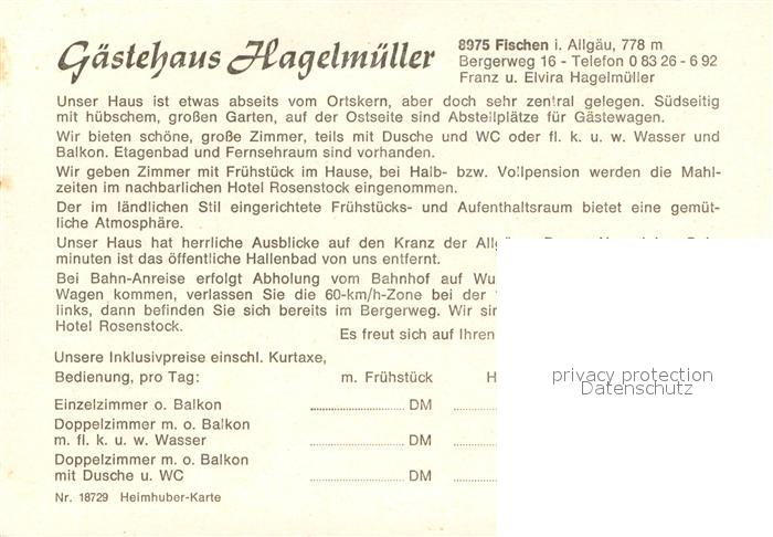 73654670 Fischen Allgaeu Gaestehaus Hagelmueller Fruehstuecksraum Diele Aufenthaltsraum Gaestezimmer postalisch nicht gelaufen Werbekarte (keine Postkarte) Erhaltung siehe scans [FriedD77] KatCode: 11110009780121