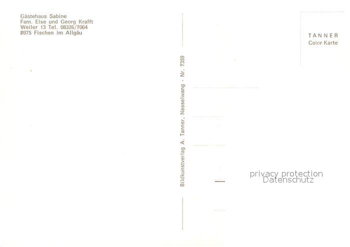 72961145 Fischen Allgaeu Gaestehaus Sabine-Fischen Breitachklamm postalisch nicht gelaufen Erhaltung siehe scans [NatalD47] KatCode: 11110009780121