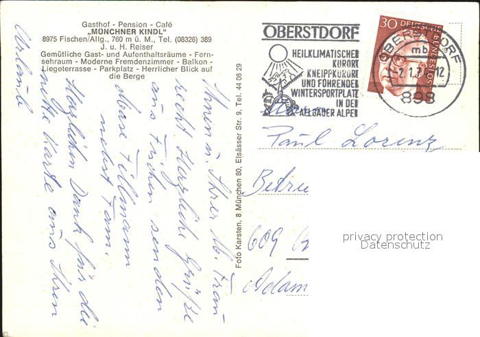 72570726 alte Postkarte Fischen Allgaeu Gasthof Muenchner Kindl postalisch gelaufen Erhaltung siehe scans [AndreD76] KatCode: 11110009780121