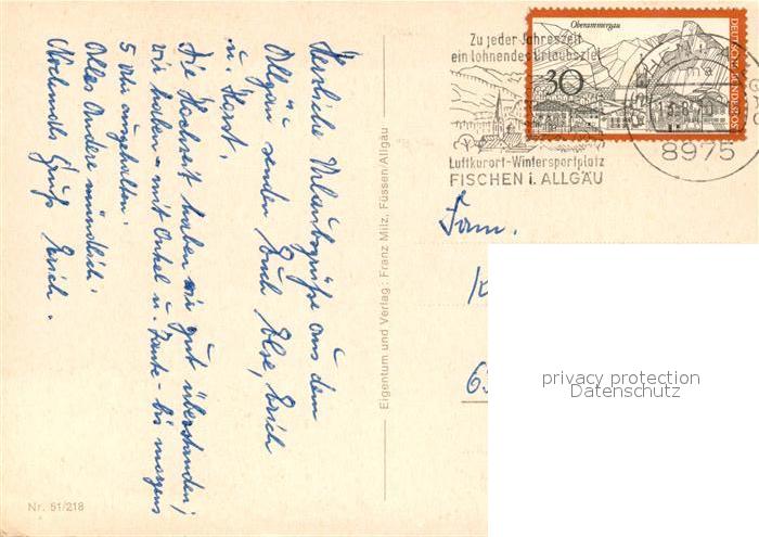 73127586 alte Postkarte Fischen Allgaeu Gesamtansicht mit Alpenpanorama Alpenflora Edelweiss Enzian postalisch gelaufen Erhaltung siehe scans [FriedD77] KatCode: 11110009780121