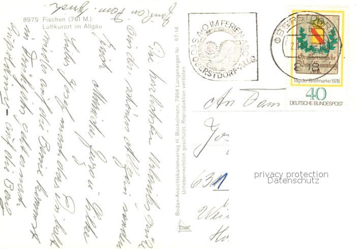 73226953 alte Postkarte Fischen Allgaeu Gesamtansicht mit Alpenpanorama Kirche Freibad postalisch gelaufen Erhaltung siehe scans [FriedD77] KatCode: 11110009780121