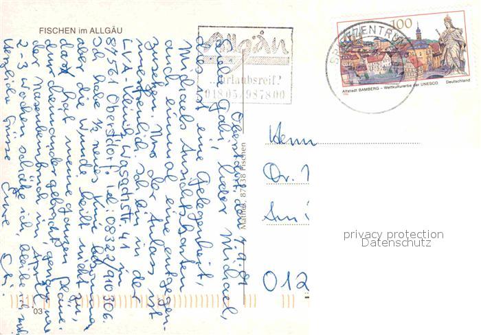 72646056 alte Postkarte Fischen Allgaeu Gesamtansicht mit Entschenkop Nebelhorn Rubihorn Allgaeuer Alpen postalisch gelaufen Erhaltung siehe scans [FriedD77] KatCode: 11110009780121