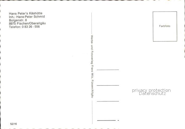 72465708 Fischen Allgaeu Hans Peters Kaeshuette Milchstube Theke Panorama postalisch nicht gelaufen Erhaltung siehe scans KatCode: 11110009780121