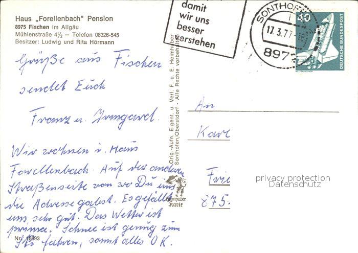 72240070 alte Postkarte Fischen Allgaeu Haus Forellenbach Pension postalisch gelaufen Erhaltung siehe scans KatCode: 11110009780121