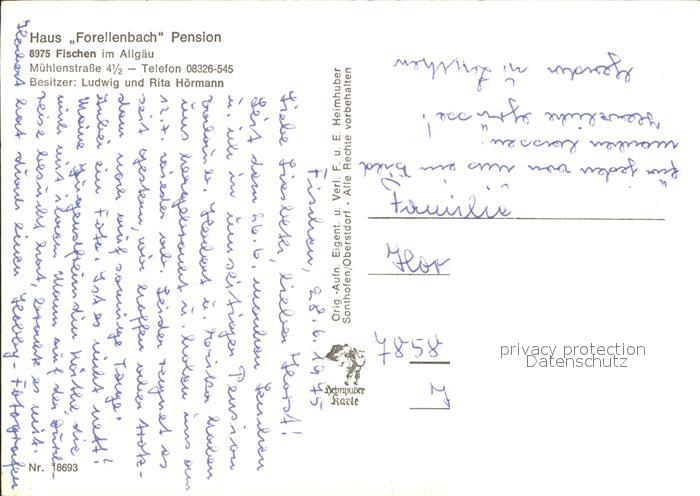 72285444 Fischen Allgaeu Haus Forellenbach postalisch nicht gelaufen Erhaltung siehe scans KatCode: 11110009780121