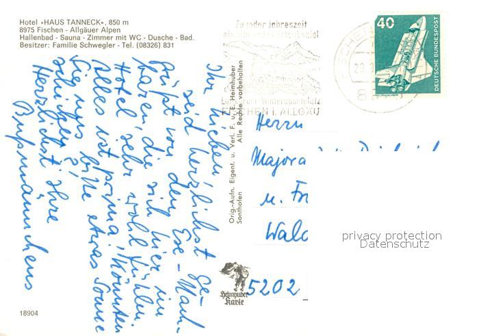 73636611 alte Postkarte Fischen Allgaeu Hotel Haus Tanneck Restaurant Hallenbad Halle Liegewiese Pool postalisch gelaufen Erhaltung siehe scans [WerneD78] KatCode: 11110009780121