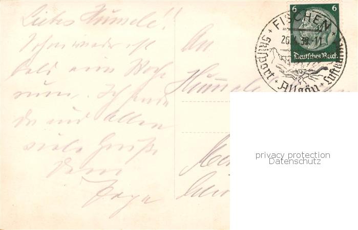 73802990 alte Postkarte Fischen Allgaeu Kemptner Skihuette mit Gruentenblick postalisch gelaufen Erhaltung siehe scans [WerneD78] KatCode: 11110009780121