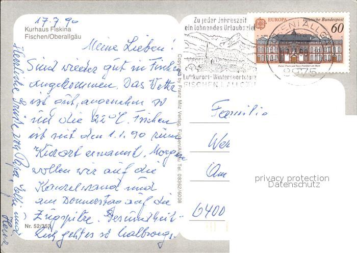 72244809 alte Postkarte Fischen Allgaeu Kurhaus Fiskina postalisch gelaufen Erhaltung siehe scans KatCode: 11110009780121