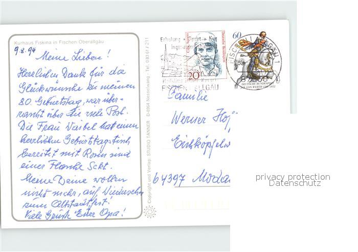 72256869 alte Postkarte Fischen Allgaeu Kurhaus Fiskina Details postalisch gelaufen Erhaltung siehe scans KatCode: 11110009780121