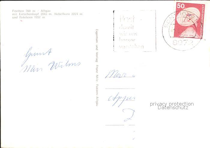 72597580 alte Postkarte Fischen Allgaeu mit Entschenkopf Nebelhorn udn Rubihorn postalisch gelaufen Erhaltung siehe scans [LiesaD40] KatCode: 11110009780121