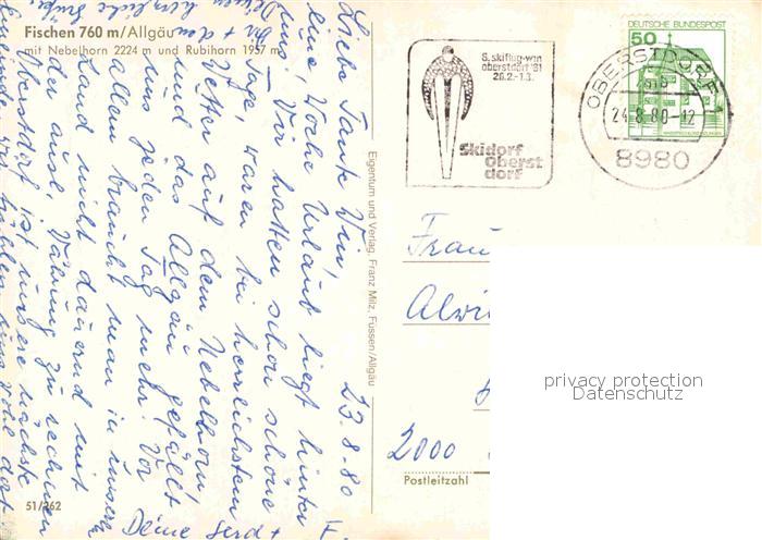 72742743 alte Postkarte Fischen Allgaeu mit Nebelhorn und Rubihorn postalisch gelaufen Erhaltung siehe scans [WerneD78] KatCode: 11110009780121