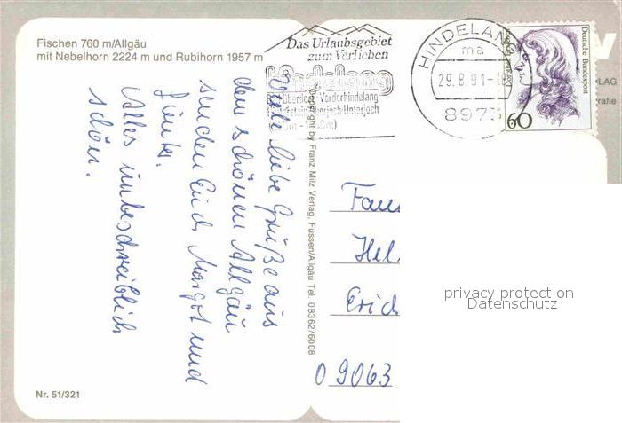 72616669 alte Postkarte Fischen Allgaeu mit Nebelhorn und Rubihorn postalisch gelaufen Erhaltung siehe scans [WerneD78] KatCode: 11110009780121