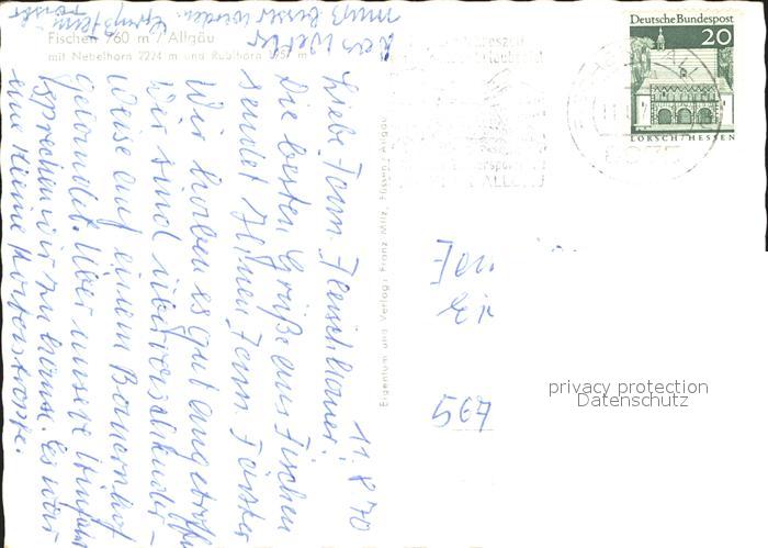 72202667 alte Postkarte Fischen Allgaeu Nebelhorn Dorf postalisch gelaufen Erhaltung siehe scans KatCode: 11110009780121
