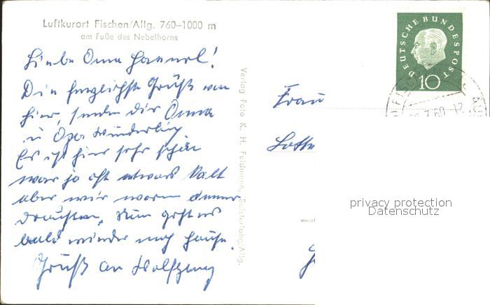72357416 alte Postkarte Fischen Allgaeu Nebelhorn Illerbruecke Hoerner Anger postalisch gelaufen Erhaltung siehe scans KatCode: 11110009780121