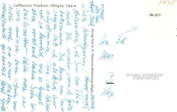 43352222 alte Postkarte Fischen Allgaeu Nebelhorn Illerbruecke Hoerner Anger postalisch gelaufen Erhaltung siehe scans [WerneD78] KatCode: 11110009780121