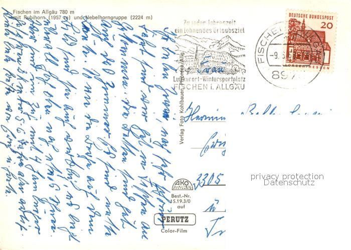 73071267 alte Postkarte Fischen Allgaeu Ortsansicht mit Kirche Blick zum Rubihorn Nebelhorngruppe postalisch gelaufen Erhaltung siehe scans [FriedD77] KatCode: 11110009780121