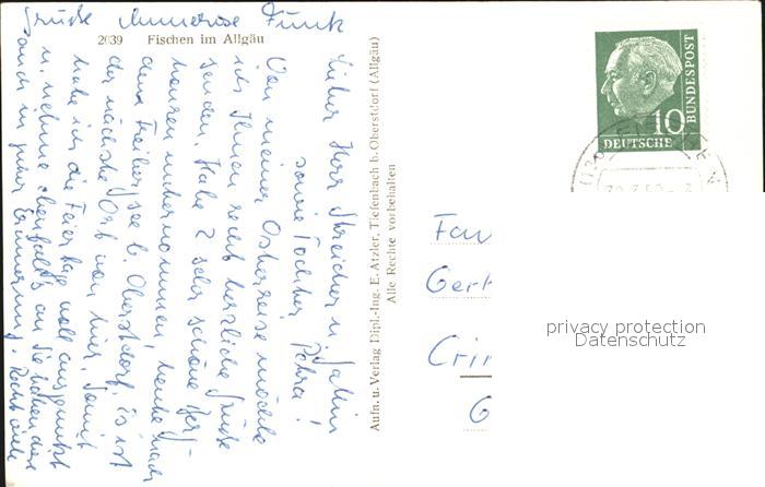 72445752 alte Postkarte Fischen Allgaeu Panorama postalisch gelaufen Erhaltung siehe scans KatCode: 11110009780121
